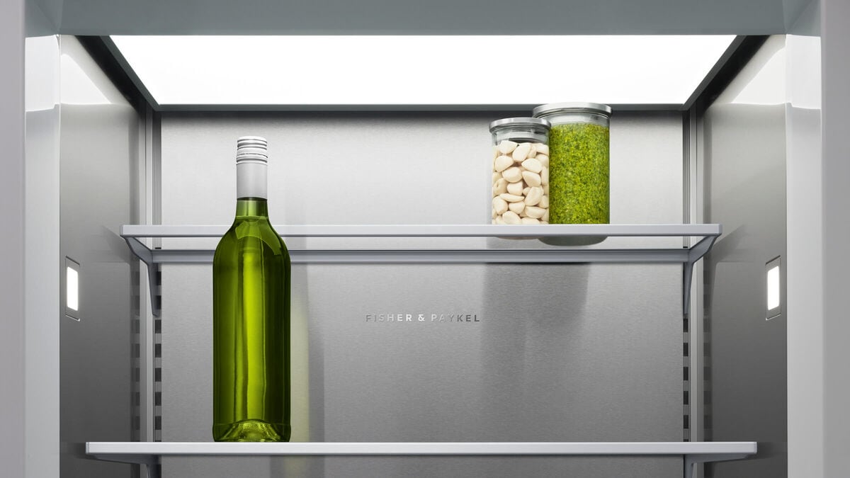 The premium design and finish includes a steel interior lining as well as full extension metal shelf runners for easy access, robust glass shelving and quality hinges designed for daily use.