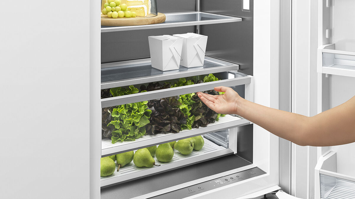 Designed to make it simple for you to store, access and remove food, this refrigerator includes LED-lit adjustable cantilevered shelving and full extension bins in the freezer. The door and veggie bins are family safe, allowing for hands-free operation thanks to its soft close mechanism.CONPLEMENTARY DESIGN