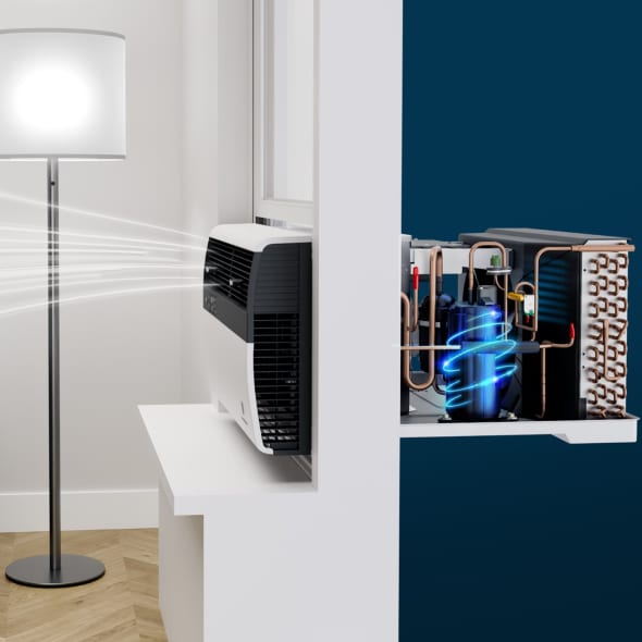 Slide-out chassis allows for both window and through-the-wall installation. Sleeve sizes remain unchanged for easy through-the-wall replacement.