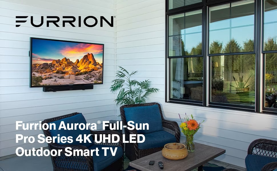 Uniquely designed for outdoor patios and entertaining areas, the Furrion Aurora Full-Sun Pro Series 4K UHD LED outdoor smart TV takes the entertainment outdoors! This outdoor television features a weatherproof TV housing that protects the internal components and delivers IP66-rated protection. The screen delivers a stunningly clear picture at 2,500-nit brightness and features HDR10+ for vivid colors and deep, rich contrast. It also features an XtremeShield IK09-rated impact-resistant screen to protect against impacts and scratches and is rated to withstand extreme operating temperatures from -24° to 140°F (-31°C to 60°C) and storage humidity of 0% to 90%.