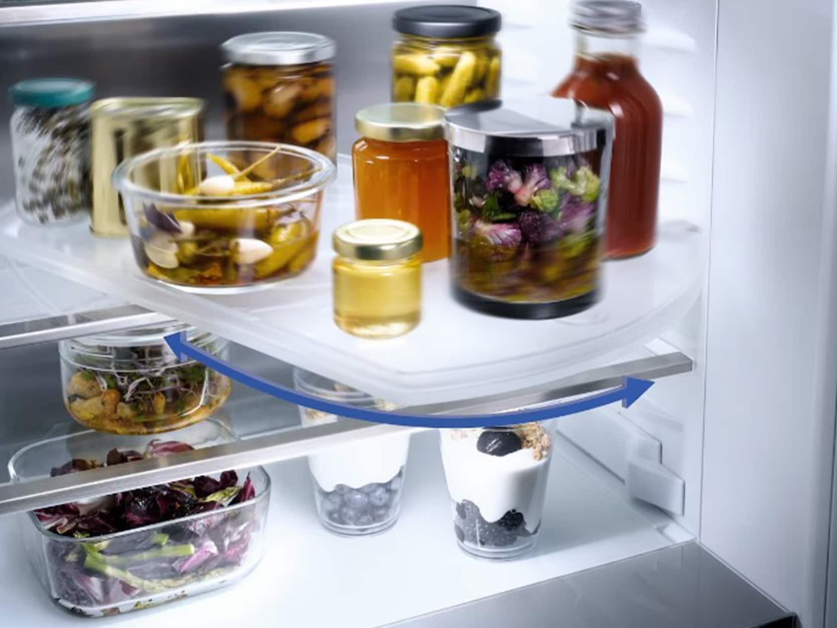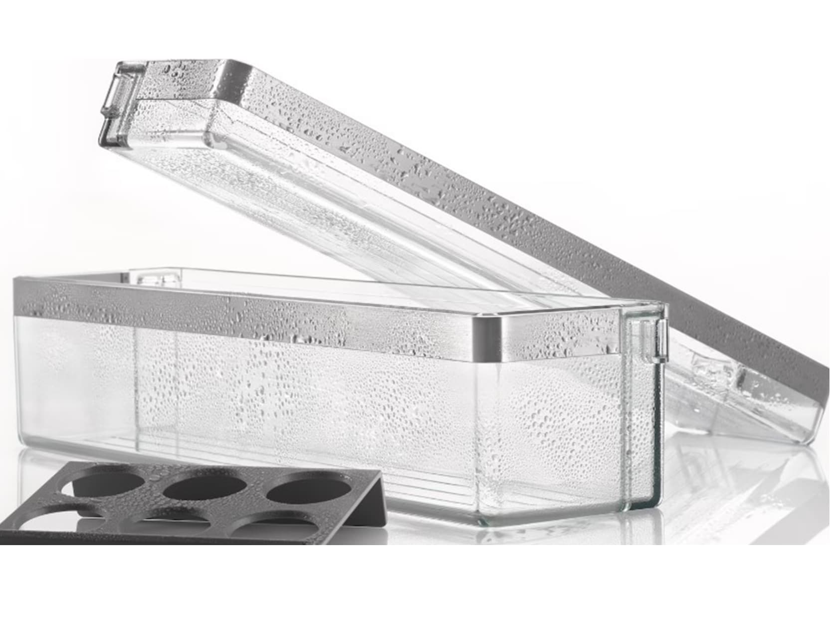 Keep everything in your Miele Refrigeration Appliance tidy with the convenient glass FlexiTray, which can be pivoted easily by 180 degrees to the front and rear. So if you need to reach something at the back of the refrigerator, there's no longer any need to push various items to the side - simply pivot the FlexiTray to the front and make the most of the space inside.