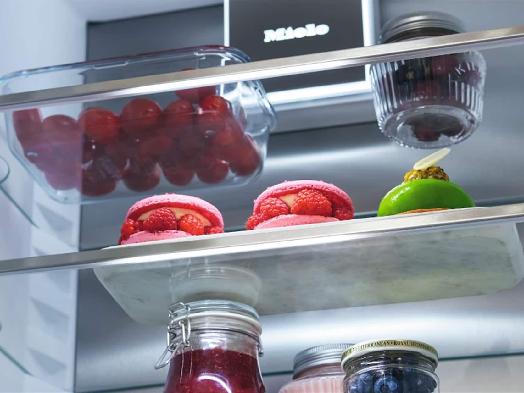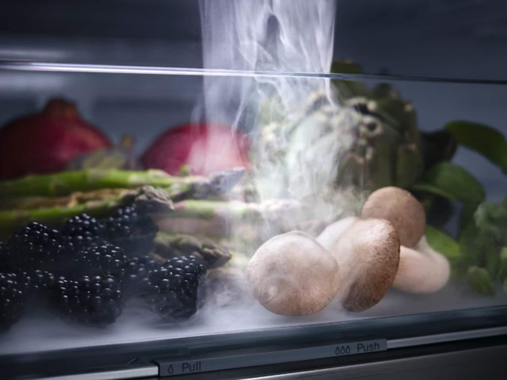 ¯Miele's PerfectFresh Active Freshness System creates the perfect storage conditions in your refrigerator. Every 90 minutes and whenever the door is opened, it sprays a fine water mist into the drawer. This creates a gentle layer of moisture on your food and always keeps the air humidity perfect - regardless of how full the refrigerator is. All you have to do is fill the small water container, and your Miele Appliance takes care of the rest.