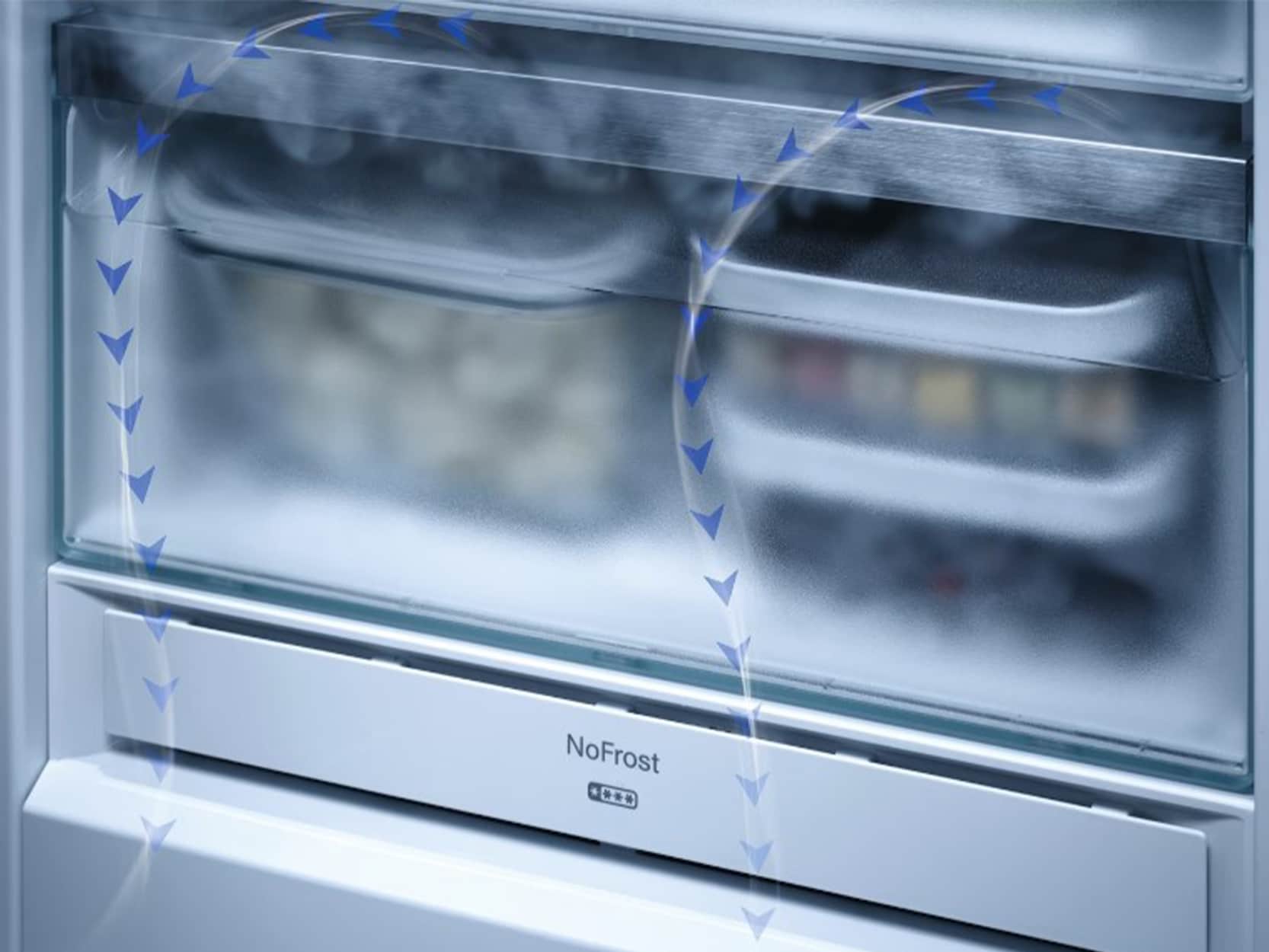 ¯With the NoFrost system you never have to defrost your Miele Refrigeration Appliance again. Circulation cooling ensures that cold, dry air is evenly distributed in the interior, preventing ice formation. This means no ice deposits on your frozen goods and allows drawers to be opened and closed easily without layers of ice interfering with them. NoFrost offers maximum convenience for freezing food and saves the hassle of defrosting - forever.