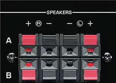Equipped with speaker terminals for two systems, this receiver lets you connect two sets of speakers