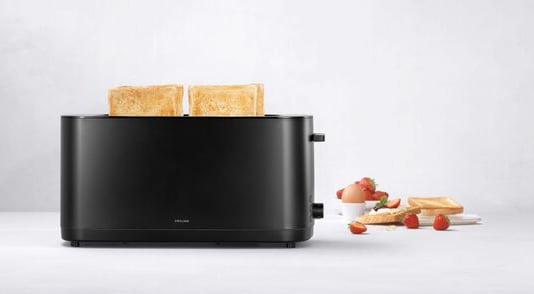 The long slot ZWILLING toaster ensures evenly browned toast, bagels, muffins, artisan-style bread, and more, every time you use it. The extra-long slots each accommodate 2 standard bread slices or 1 long artisanal-style bread slice. Four separate heating elements and balanced heat distribution ensure that every slice of bread is evenly toasted on both sides, even after repeated toasting. The result: toast that's crispy on the outside and soft on the inside. And when it's finished, toast doesn't fly out of the toaster. The soft-lift feature ensures it gently glides up and the built-in extra-lift allows even smaller slices to be removed safely. Clean up is a cinch. Crumbs end up in the crumb drawer that slides out for easy removal.