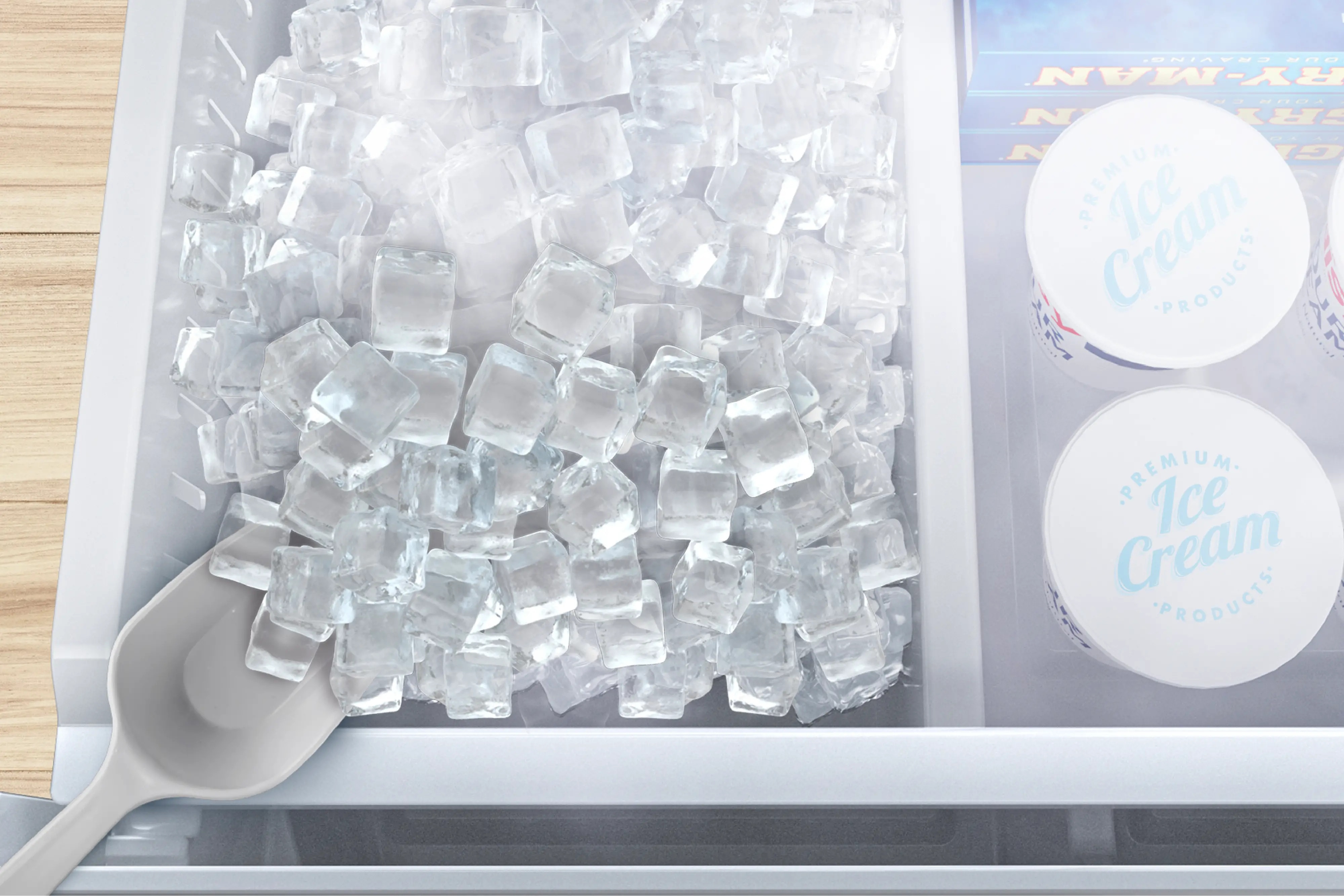 Icemakers in the refrigerator and freezer compartments produce up to 7 lbs. of ice per day, ensuring that you never run out when it counts.