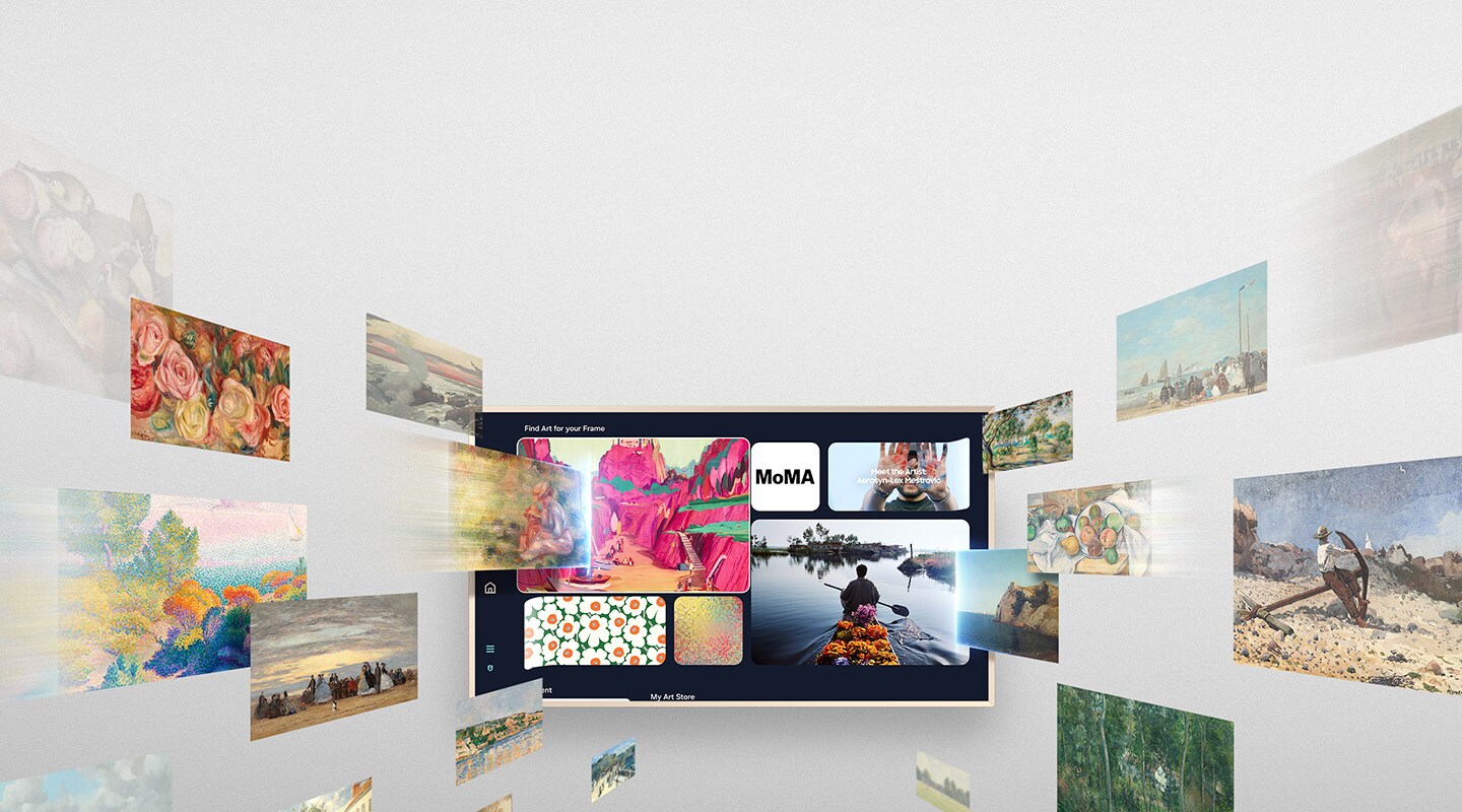 Our most advanced Art TV blurs the lines between showpiece and entertainment for art and movie lovers alike. The modern, slim-bezel frame,matte screen and wireless connection* allow you to create a clutter-free gallery experience at home, featuring a selection of world-renownedartwork***. Whether you're beholding a masterpiece or curling up to watch your favorite movie, enjoy spectacular, 4K Neo QLED picture and soundquality, along with personalized TV experiences powered by Samsung Vision AI.**