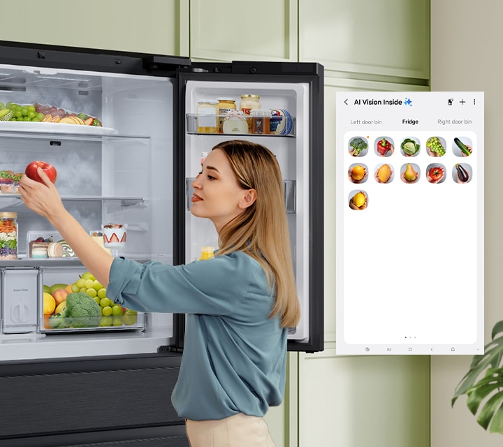 **AI Vision Inside can recognize and automatically label 37 unobscured fresh food items such as select fruits and vegetables; other items may be manually labeled. Results vary by manner of placement.