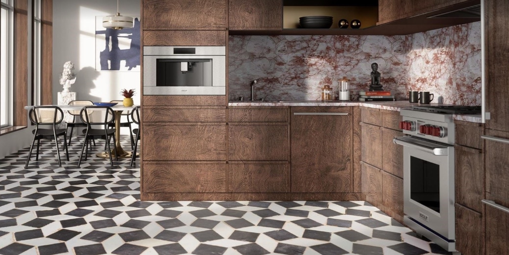 The elegant, modern aesthetic perfectly pairs with a full suite of similarly styled Sub-Zero, Wolf, and Cove appliances